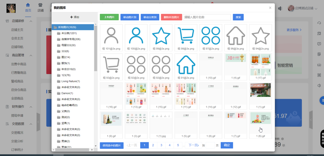 (1)點擊微分銷商城logo圖片,彈出我的圖庫,并選擇使用圖片