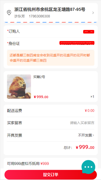 (2)下單填寫訂購人姓名和身份證號碼