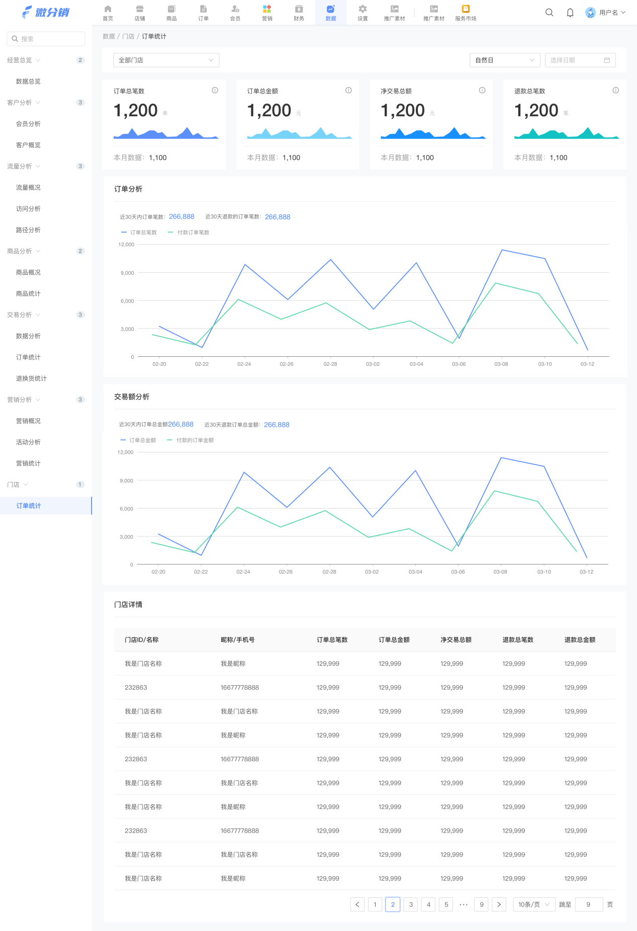 (1)新版后臺-數(shù)據-交易分析-訂單統(tǒng)計新增門店統(tǒng)計: