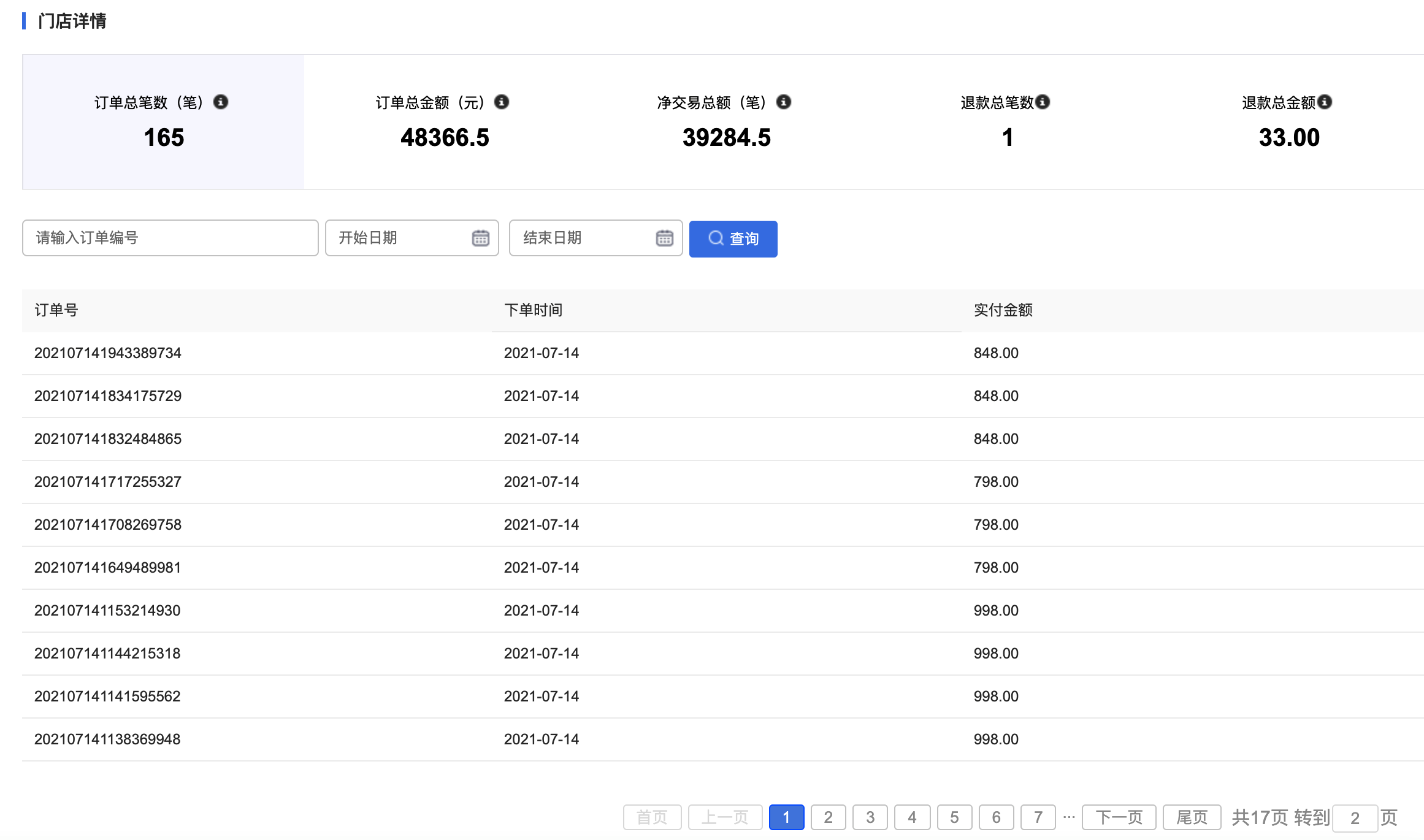 用戶場景:新增門店訂單筆數(shù)、訂單金額等數(shù)據統(tǒng)計,方便商家核對統(tǒng)計門店數(shù)據