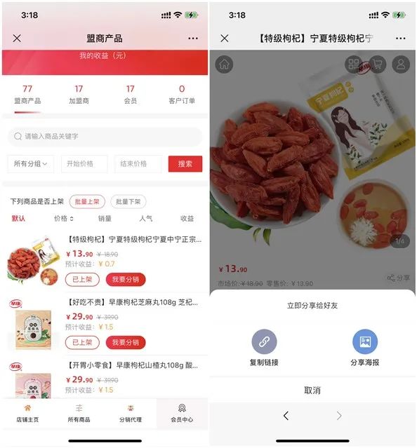 只需關注“早康枸杞”并“成功申請成為分銷商”,將會成為該商城的永久正式銷售商,享有分銷傭金收益。