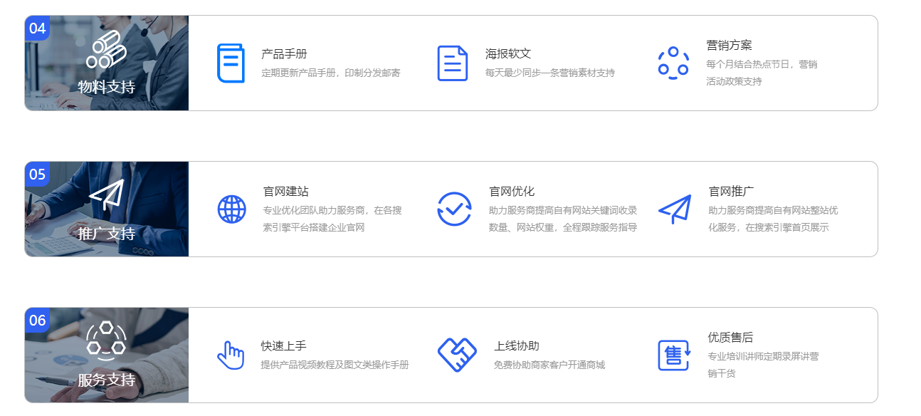 啟博作為新經濟形態下的電商數字化解決方案公司,在賦能各類B端商戶的同時,對外宣布將啟動“共創共贏 讓創業更簡單計劃”,并有“優厚政策”對代理商進行重點扶持,共同掘金社交電商新賽道。啟博電商SaaS渠道招商產品有微分銷商城代理小程序代理客滿云店代理客滿美業代理千匯團代理官網建站官網優化業務代理等,涵蓋公私域主流解決方案和經營場景。