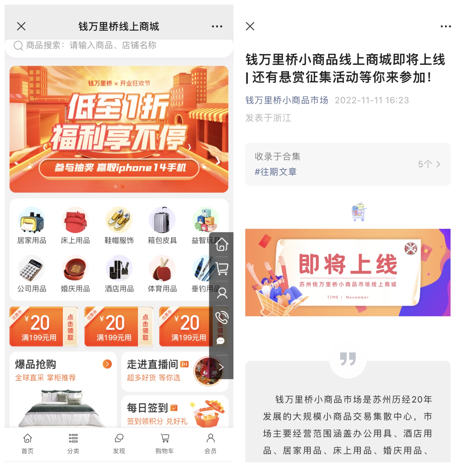 蘇州“錢萬里橋”小商品市場通過啟博微分銷商完善線上消費場景,并借助門店導購引流等營銷方式將線下客流導入線上,以“錢萬里橋小商品市場”微商城與“公眾號”兩大核心陣地承接客流,并以限量優惠券激勵顧客消費、完成會員轉化,最終為“錢萬里橋小商品市場”微商城沉淀私域資產,在行業同質化存量競爭率先找到突破口。