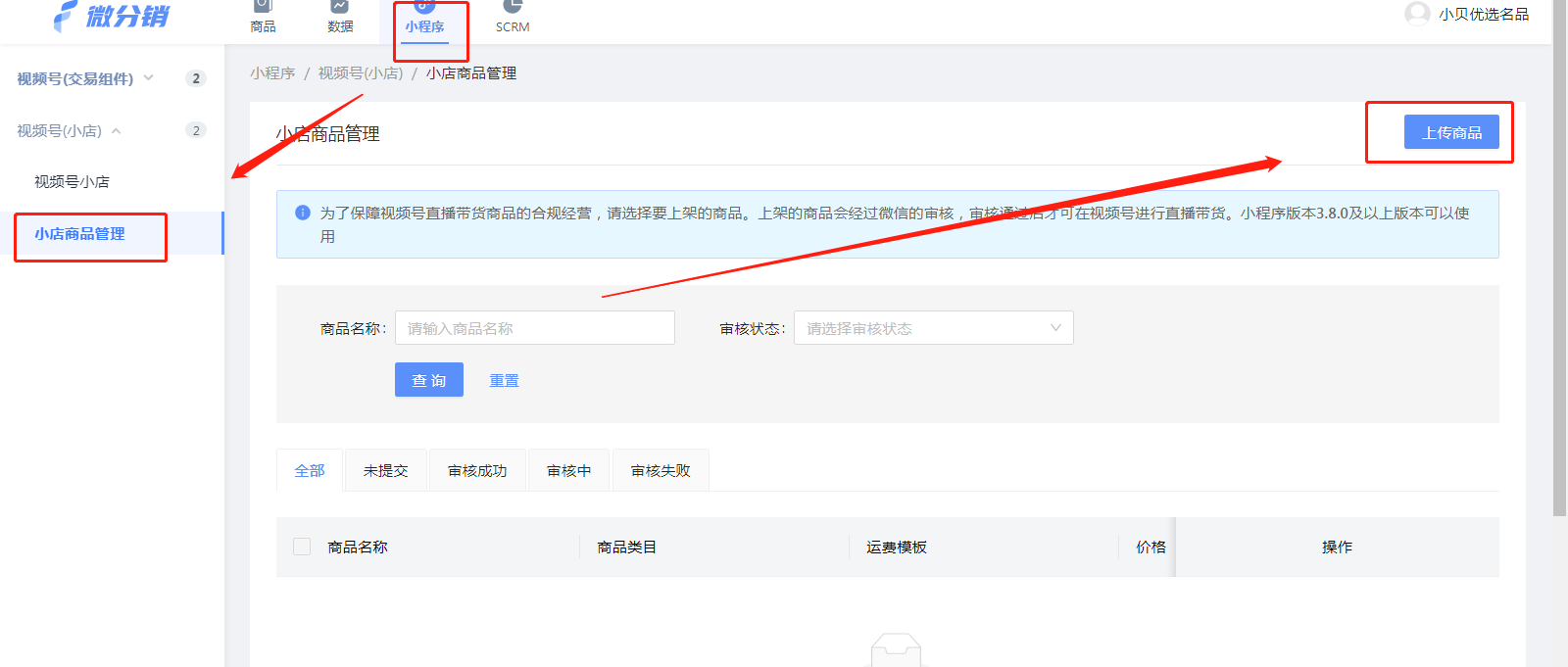 3.上傳商品到視頻號小店