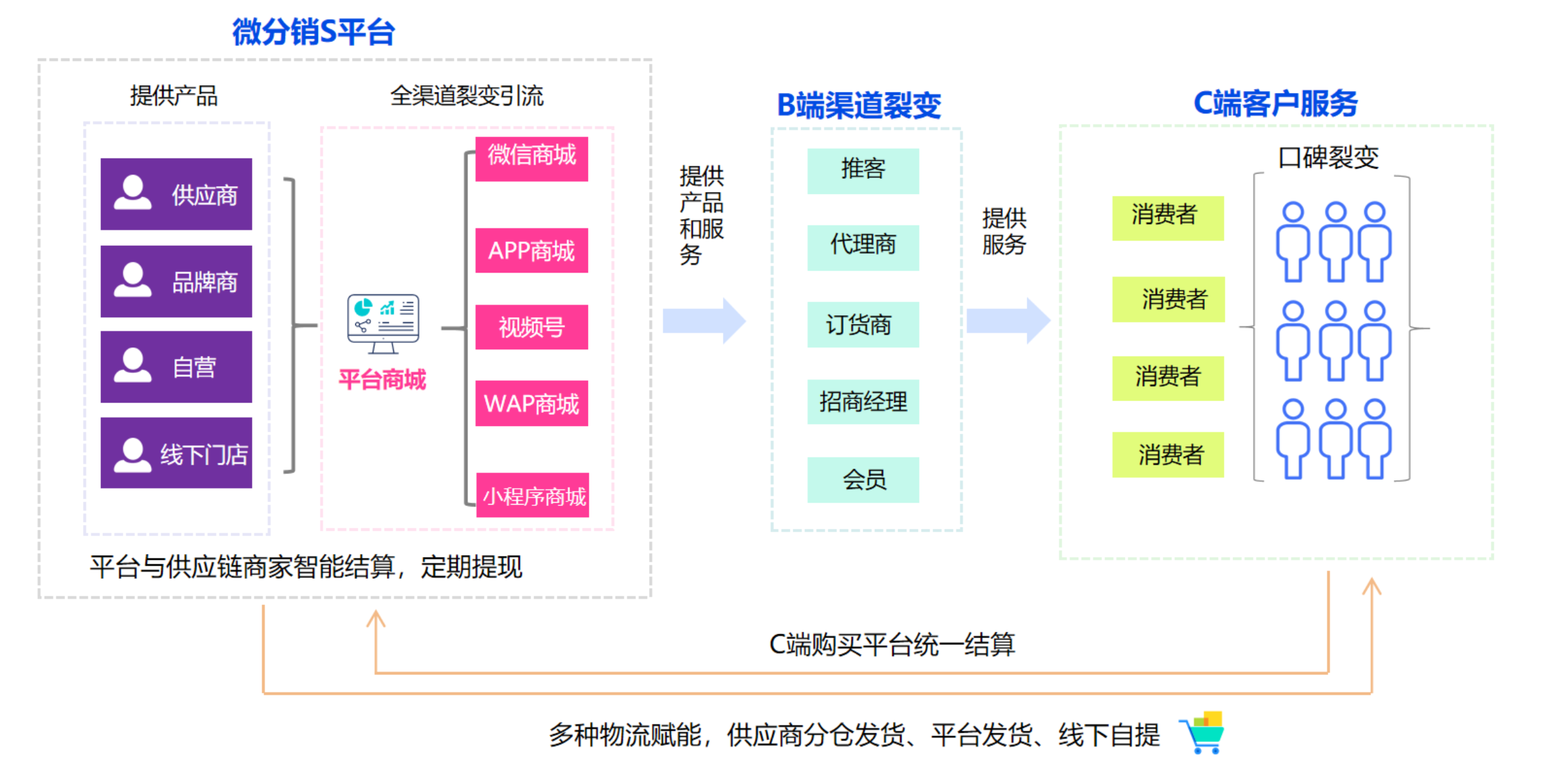 是指多店鋪入駐的平臺商城系統,以“商家入駐”為核心,實現 微信端、APP端、WAP端、小程序端 四網合一,自帶分銷代理功能、傭金結算、售后服務于一體。可同時實現平臺自營和第三方銷售兩種運營模式,打通行業、商圈上下游供應鏈的專業系統,是企業開展小京東、小天貓的多商家入駐型電商業務的最佳選擇。